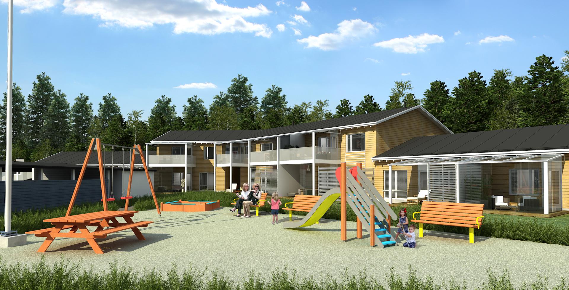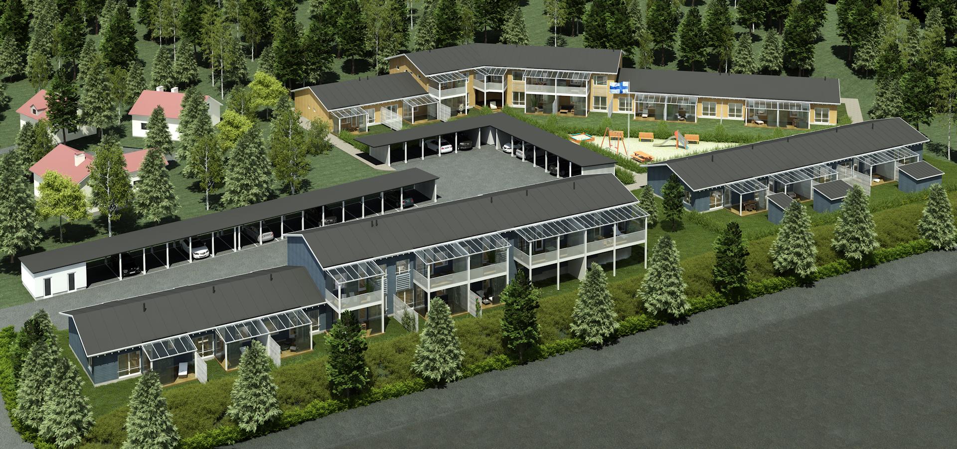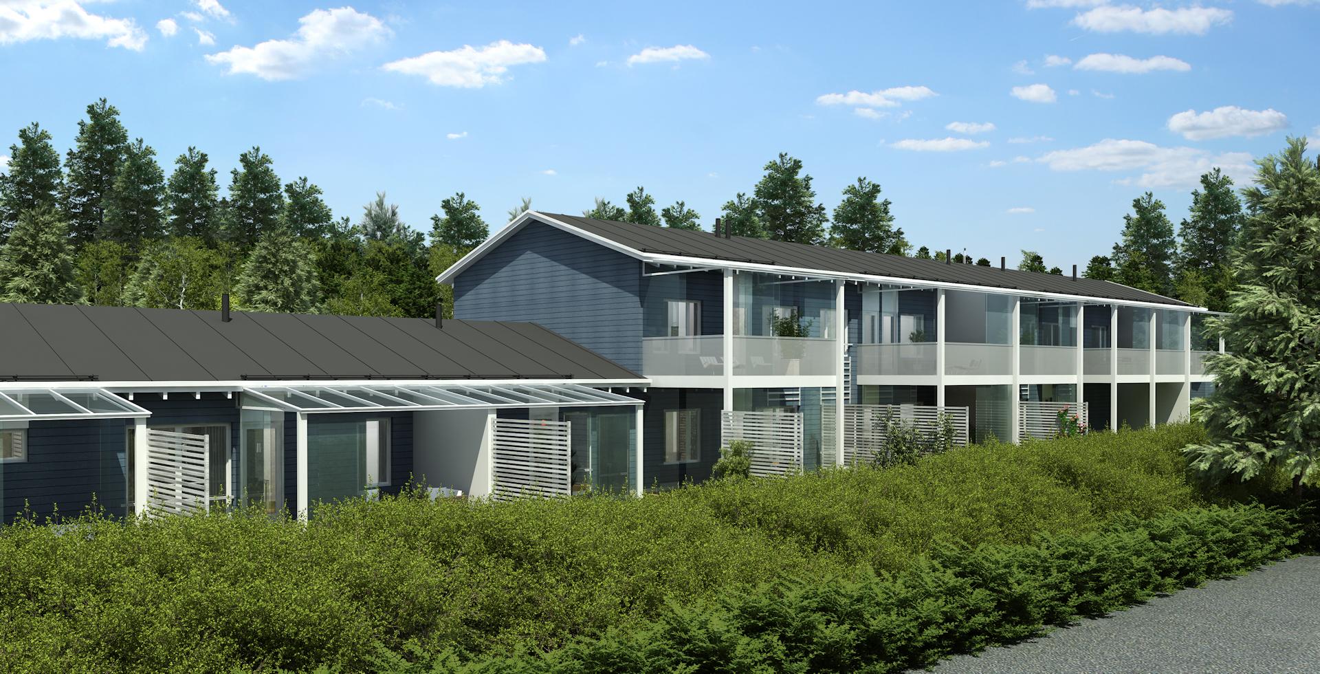Kolmen rivitalon kokonaisuus Kouvolan Katajaharjun alueella. Talot sijoittuvat loivalle rinnetontille, ja maastomuotojen vuoksi kaksi taloista ovat osittain kaksikerroksisia. Rakennusten ulkoverhous on vaakapaneelia, ja jokaiselle talolle on haettu omaa identiteettiä toisistaan eroavilla voimakkailla väreillä. Kohteeseen kuuluu myös kellariin sijoitettu väestönsuoja sekä autokatos/talousrakennus.