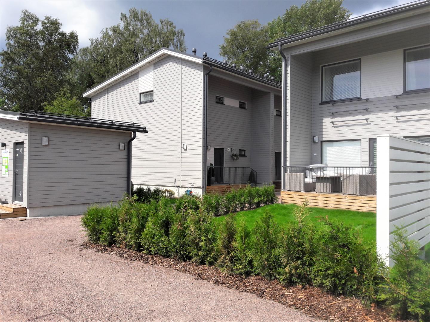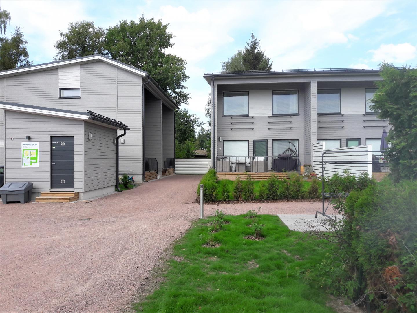 Townhouse-tyyppiset paritalot Espoon Martinsiltaan. Huoneistot ovat kompakteja kolmioita.