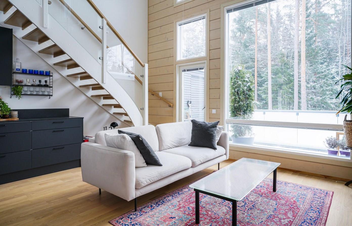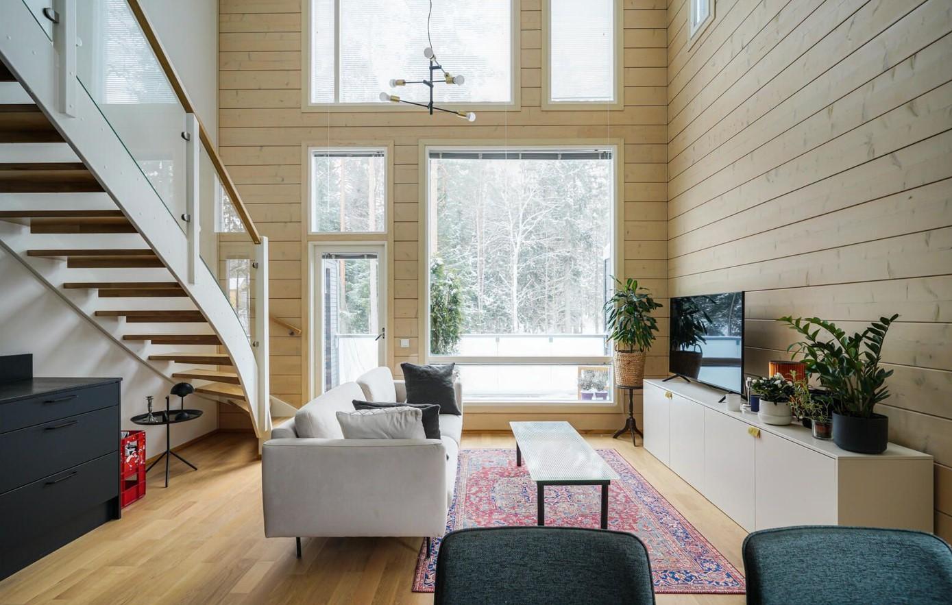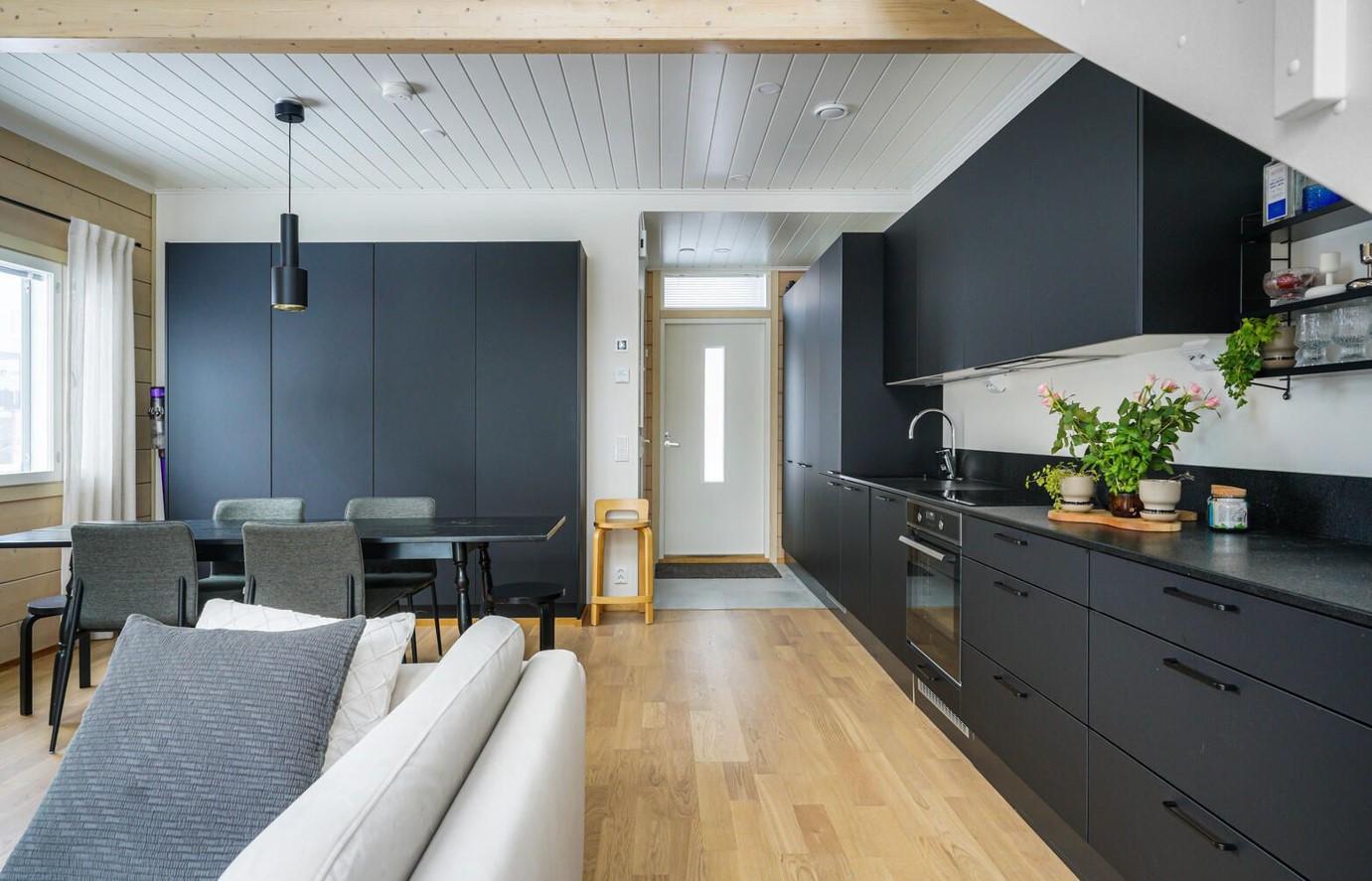 Jokaisesta asunnosta löytyy alakerrasta olohuone, keittiö ja kylpyhuone sekä terassi. Ylemmällä tasolla parvi aukeaa olohuoneeseen.