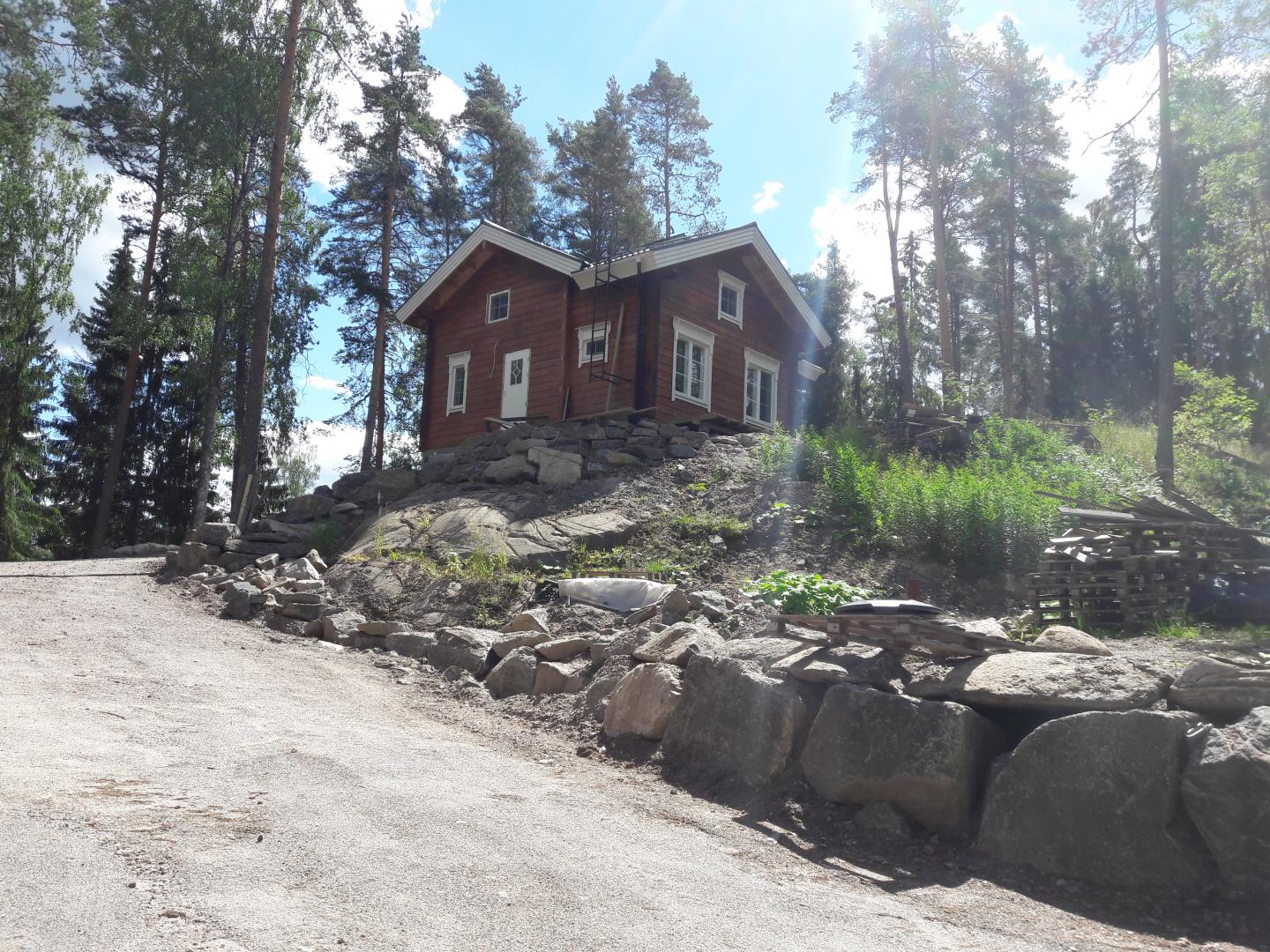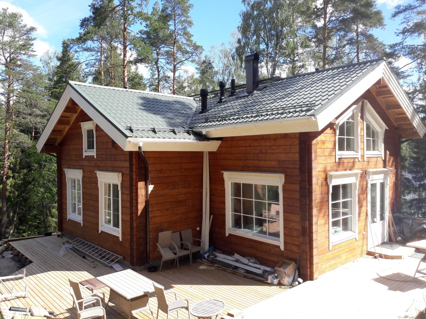 Kuusamo Hirsitalojen toimittama vapaa-ajan asunto sekä autokatos Luukinrannalle.
