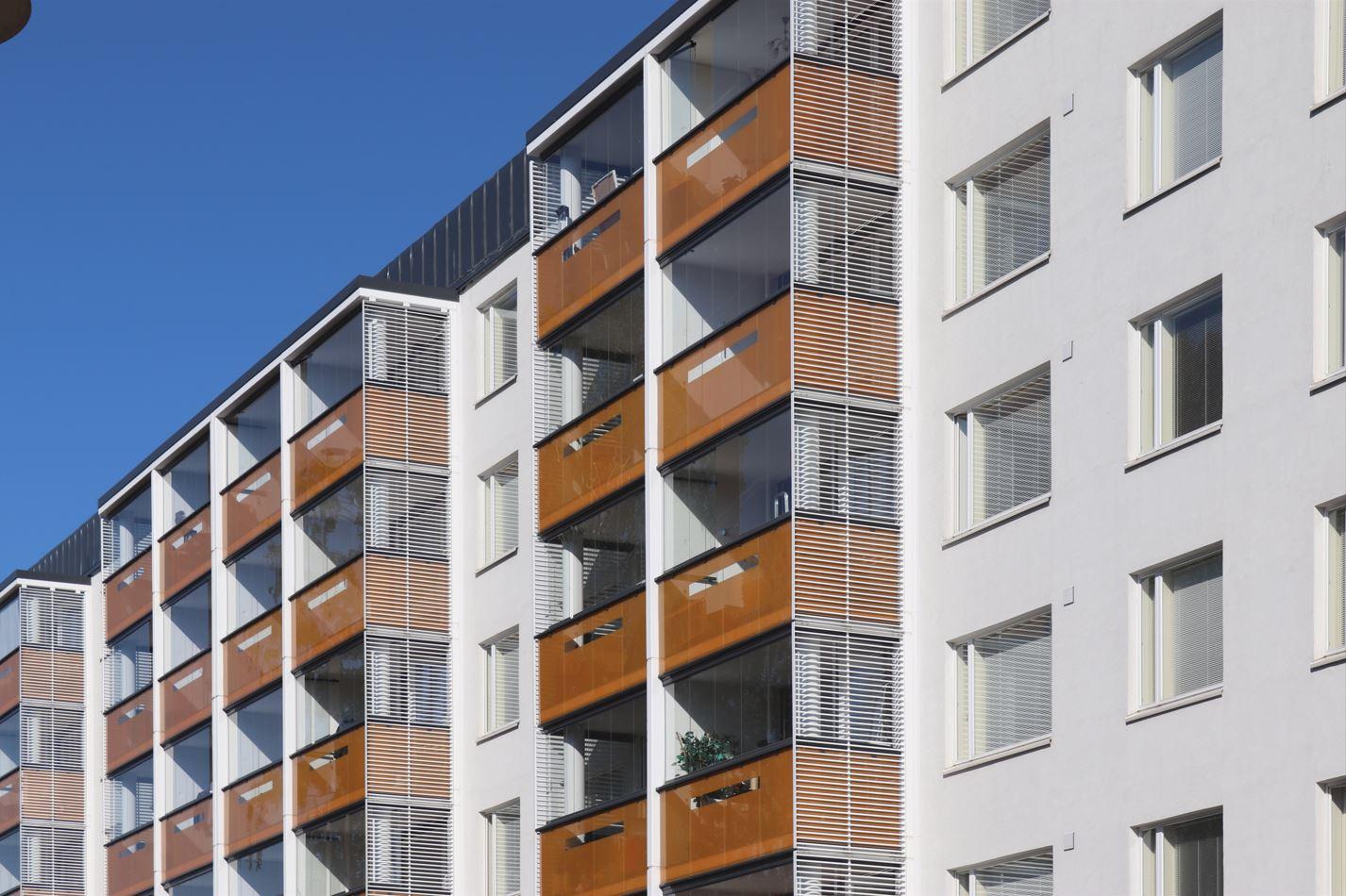 Kohteessa tehtiin myös huoneistojen tilamuutoksia ja yhdistämisiä, parvekkeiden uusiminen ja ranskalaisten parvekkeiden lisääminen.
