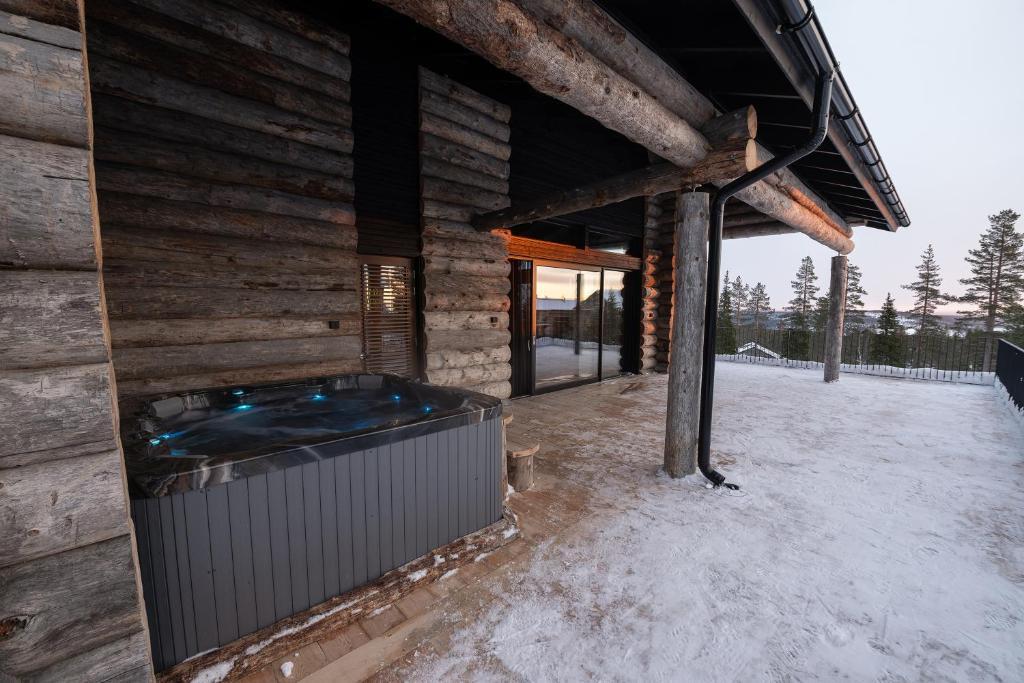 Tämä kelohonkahuvila tarjoaa neljä tilavaa makuuhuonetta, avaran tupakeittiön sekä useita rentoutumiseen suunnattuja tiloja. Sisustuksessa on hyödynnetty luonnonläheisiä sävyjä ja korkealaatuisia materiaaleja. Huvilan varustukseen kuuluu poreallas, sauna sekä useita avaria terasseja.