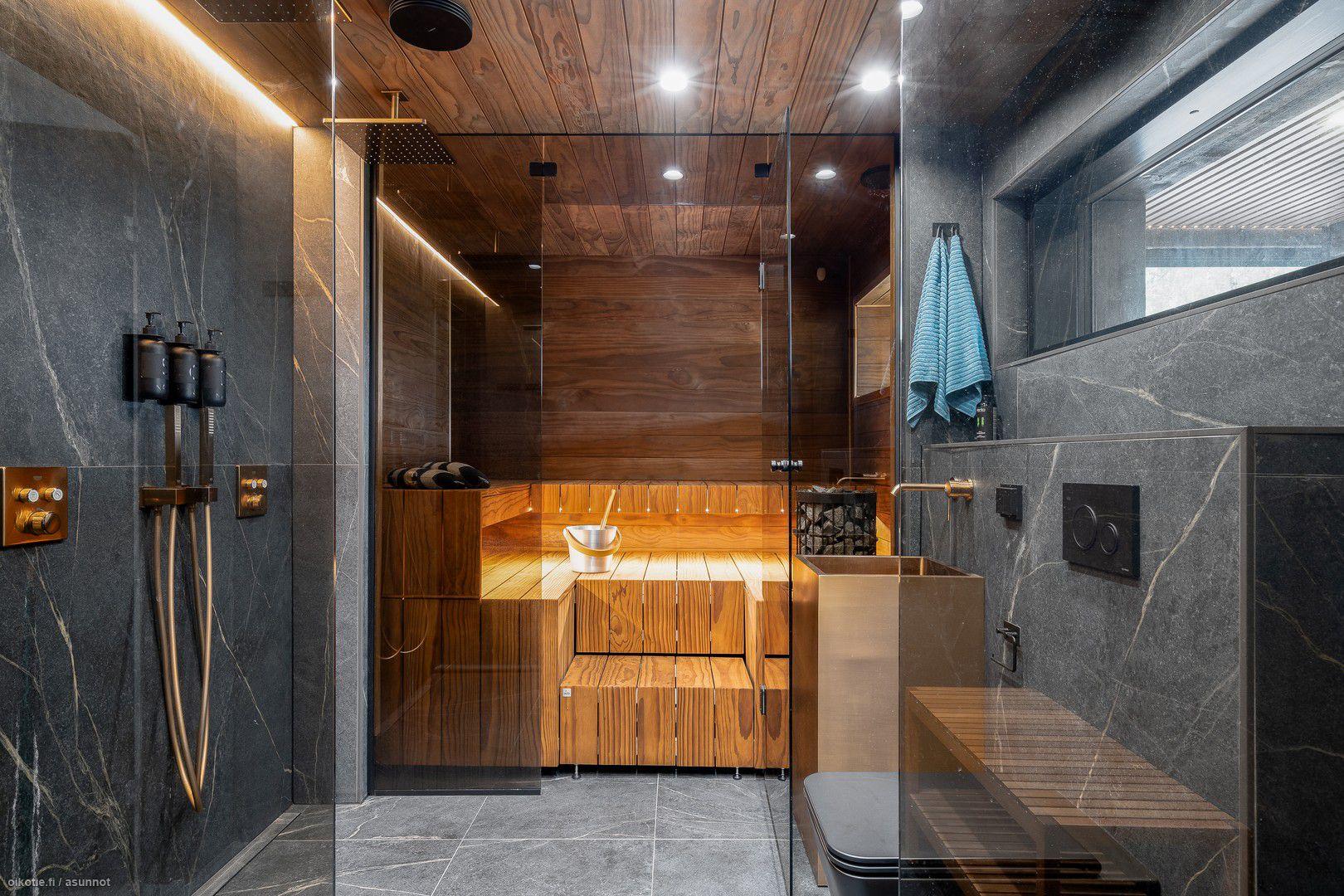Asuinrakennuksen selkeä tilajako, esteettömyyden huomiointi sekä modernit tekniset ratkaisut – kuten vesi-ilmalämpöpumppu ja koneellinen ilmanvaihto lämmöntalteenotolla – tukevat kestävän asumisen periaatteita. Saunaosasto ja monipuoliset ulko-oleskelutilat kruunaavat kokonaisuuden, tarjoten arjen ylellisyyttä.